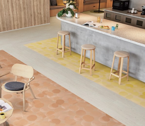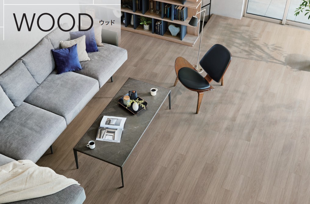 フロアタイルとは、リアルな石目や木目、フローリング材を塩ビで